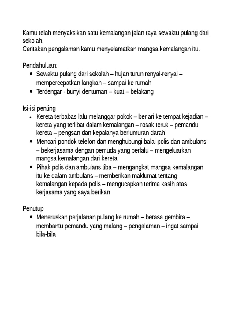 Contoh Karangan Bm Pt3 Kemalangan Jalan Raya